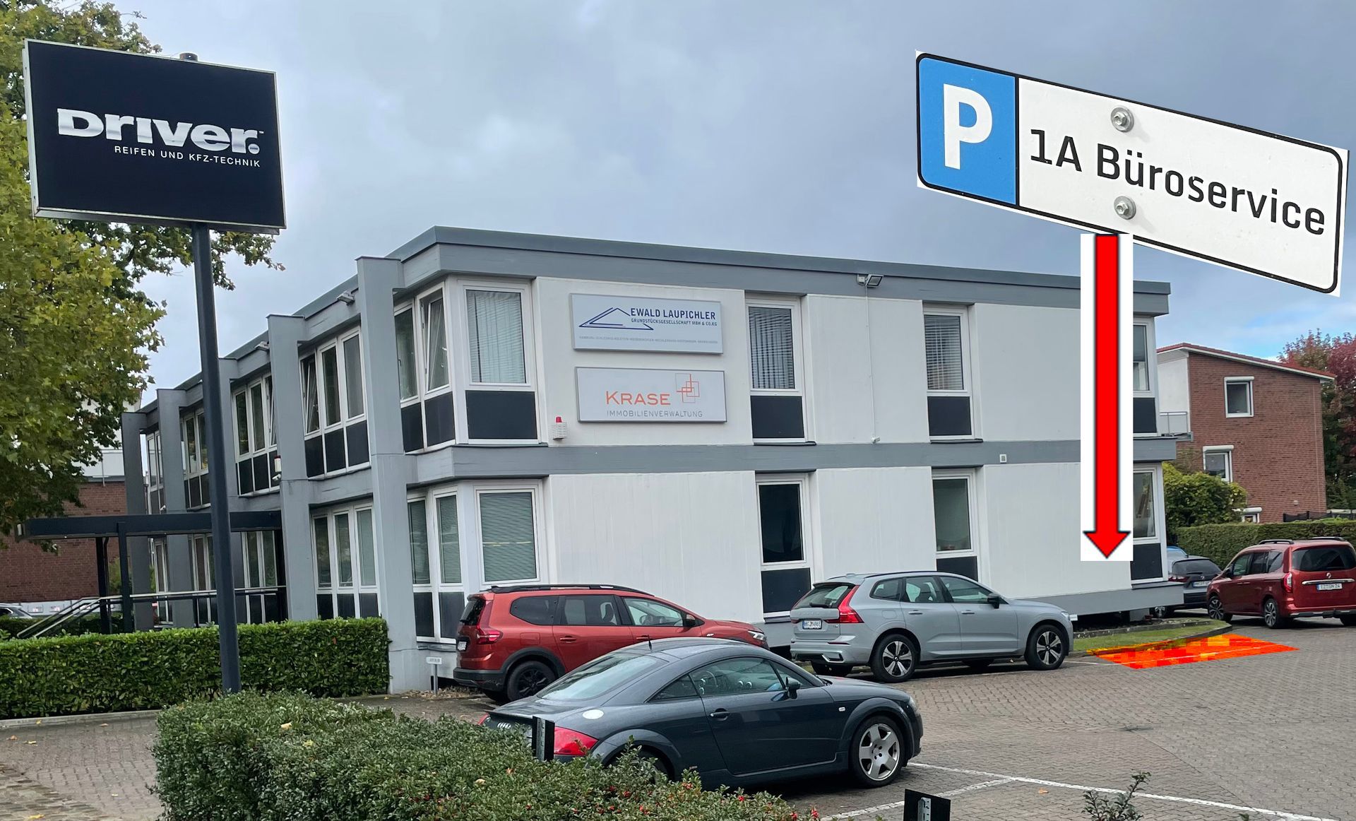 Kostenfrei Parken direkt am Haus und nur auf dem beschrifteten Parkplatz 1A-Büroservice unmittelbar an der Südfront des Gebäudes!
